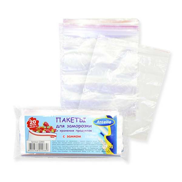 Пакеты для заморозки и хранения 1л/15*20см/20шт п/э с замком Антелла РОССИЯ