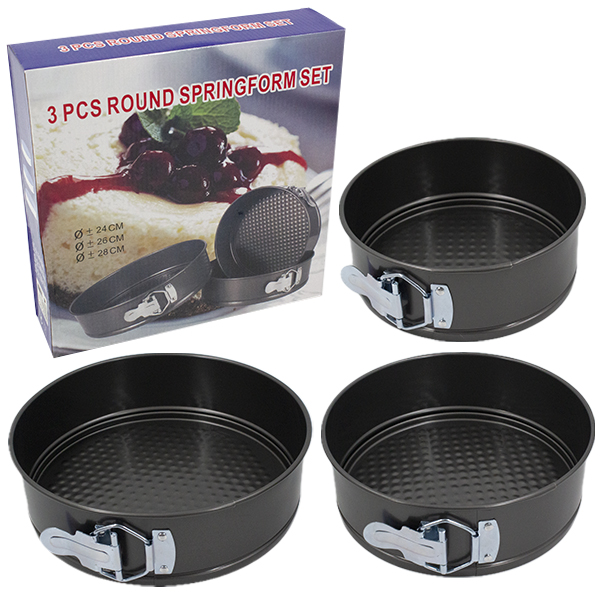 Форма для выпечки металлическая, с разъёмами, набор 3шт (Ø-24см/Ø-26см/Ø-28см)