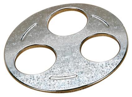 Приспособление кухонное для фиксации стеклянных банок при стерилизации . ¶¶Стерилизовать большое количество банок перед консервированием поможет специальный диск, который удобно и надежно фиксируется на кастрюле. Диск для стерилизации имеет три отверстия и предназначен для стерилизации трёх банок одновременно. Его ставят на кастрюлю с кипящей водой. Отверстия служат для пропускания пара из кастрюли в банку, которая находится на подставке горловиной вниз. Изготовлены из оцинкованной стали.