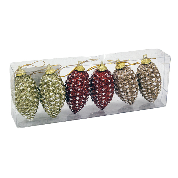 Украшение елочное ШИШКА ЦВЕТНАЯ 6шт, 7см