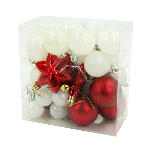 Шарики елочные набор 23шт (3/4/5см) + верхушка ели + 6 украшений