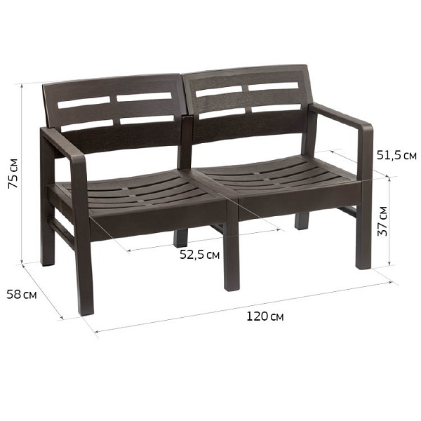 Диван РЕЙКИ двухместный 580x1200x750мм (то)