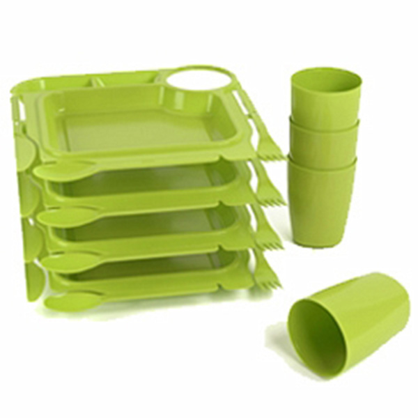 Набор пластиковых тарелок с приборами идеально подойдет для туристических походов и посиделок на природе. Такие тарелки удобно брать с собой из-за небольшого веса, легко мыть после использования и складывать в один бокс