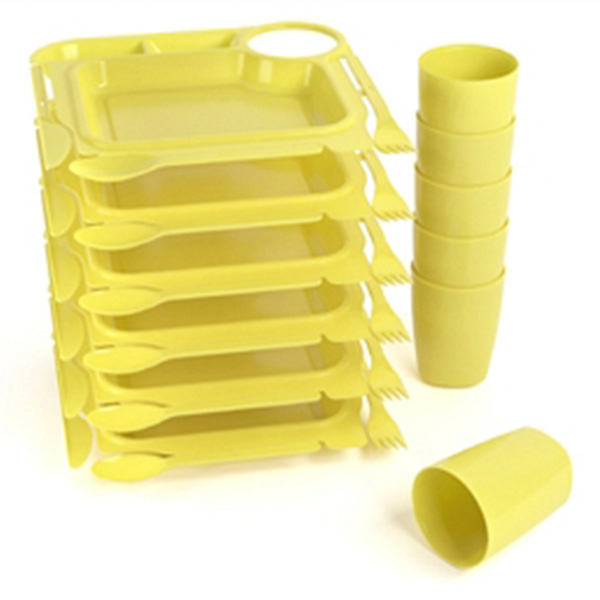 Набор пластиковых тарелок с приборами идеально подойдет для туристических походов и посиделок на природе. Такие тарелки удобно брать с собой из-за небольшого веса, легко мыть после использования и складывать в один бокс.