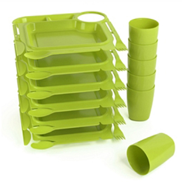 Набор пластиковых тарелок с приборами идеально подойдет для туристических походов и посиделок на природе. Такие тарелки удобно брать с собой из-за небольшого веса, легко мыть после использования и складывать в один бокс.