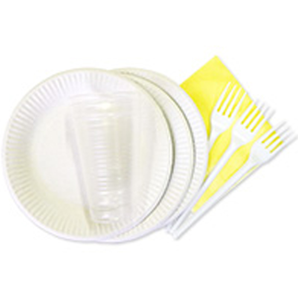 Комплектность: вилки - 3шт., стаканы 200мл - 3шт., тарелки бумажные д175мм - 3шт, салфетки бумажные - 3шт.