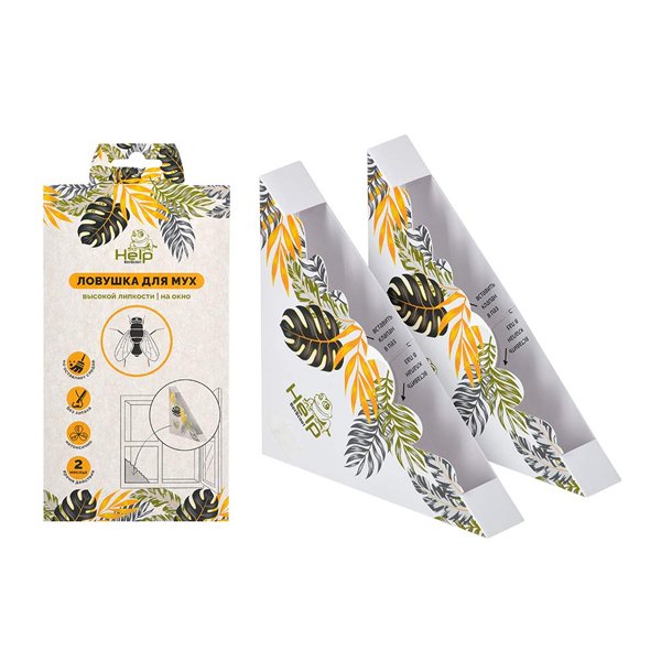 HELP Клеевая оконная ловушка от МУХ, 2 шт. в упаковке