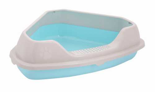 Лоток ALTA для кошек угловой с бортом "Мур-мяу" (голубой) (то)