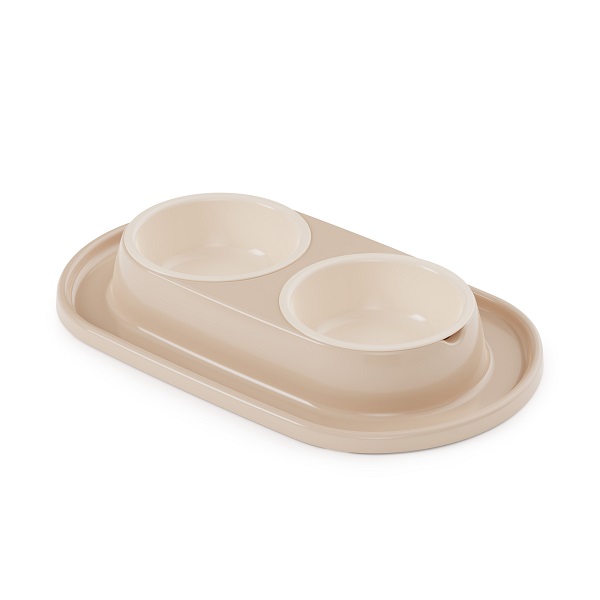 Миска ALTA 0,3л для животных двойная "Мур-мяу" (бежевый) (то)