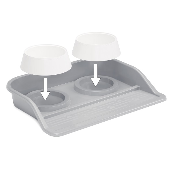 Такой набор позволяет грамотно и комфортно организовать место для кормления домашних питомцев. Специальная подставка препятствует рассыпанию корма по полу, обеспечивая чистоту Вашего дома. Съёмные миски для корма и воды надёжно крепятся к лотку, предотвращая их скольжение и переворачивание. Объём мисок подходит для небольших животных. Изделие изготавливается из качественного пластика, разрешенного для контакта с пищевыми продуктами.