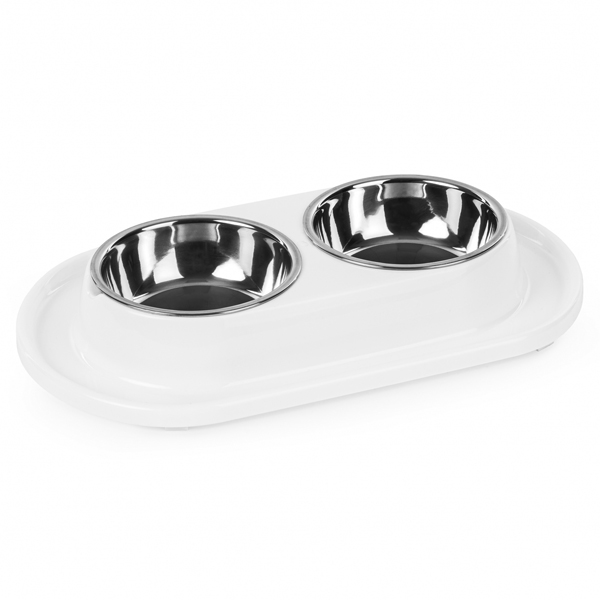 Миска ALTA для животных двойная (с металлической чашей) 0,3л (белый) (то)