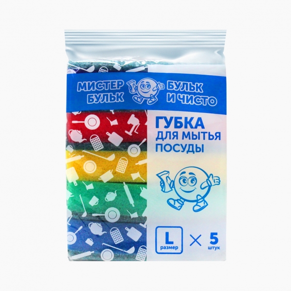 Губка для мытья посуды L 5 шт (96х64х23 мм)