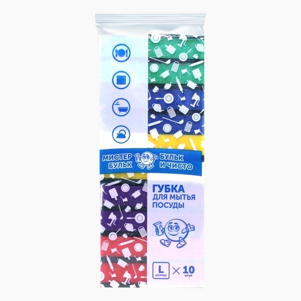 Губка для мытья посуды L 10 шт (96х64х23 мм)
