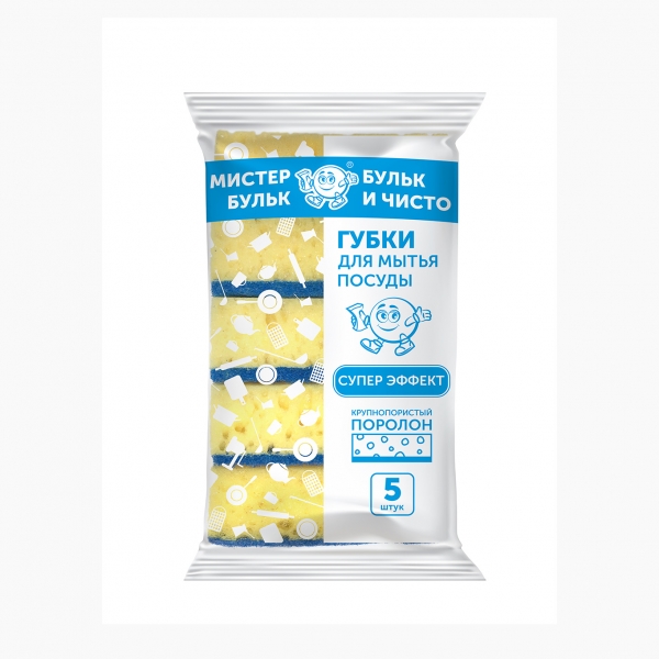 Губка для мытья посуды крупнопористая 5 шт (88х60х28 мм)