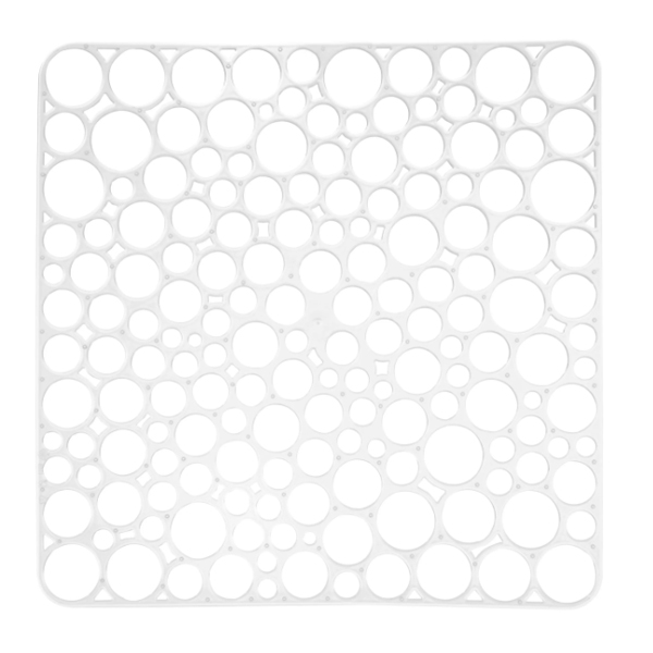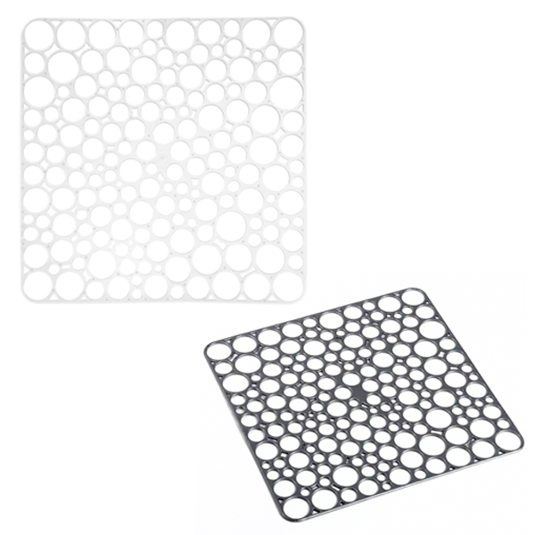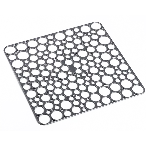Изделие имеет квадратную форму и размеры 30 на 30 см, благодаря чему оно без труда поместится практически в любую раковину. Дизайн изделия разработан таким образом, что помимо стильного внешнего вида решетка выполняет ряд практических функций. Благодаря отверстиям различного размера, крупный мусор и посторонние частицы при мытье посуды не попадают в слив Вашей трубы. Помимо этого, решетка защищает поверхность раковины от сколов, а посуду от повреждения о края мойки.