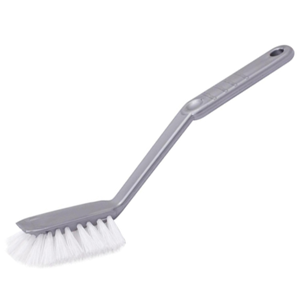 Щетка для посуды Spin&Clean из коллекции Step. Теперь не надо мочить руки и портить кожу моющими средствами, удалить жир и засохшие загрязнения легко со щеткой для посуды Spin&Clean Step! Щеточка тщательно удаляет загрязнения во всех изгибах и уголках столовых приборов, кастрюль и сковород. Упругие ворсинки имеют вид волны, что создает дополнительную вибрацию при удалении загрязнений и повышает чистящий эффект. Для чистки нагара или отложений на торце щетки Spin&Clean Step есть скребок. Чтобы кисть руки не уставала ручка щетки Step сделана эргономичной формы с насечками препятствующими скольжению. Щетина щетки мытья для посуды Spin&Clean устойчива к бытовой химии и горячей воде, после использования ее можно вымыть в посудомоечной машине. Щетка и щетина Spin&Clean Step выполнены из пищевого пластика без фенолов и фталатов и может быть использована в контакте с пищевыми продуктами, например при мытье овощей. Соберите коллекцию для чистоты дома Spin&Clean Step – современные надежные товары для создания чистоты с