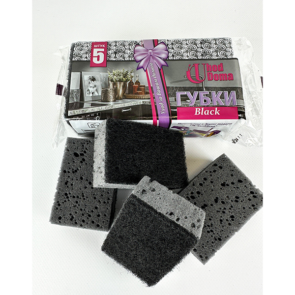 Губки хозяйственные "Black" 5шт, 90*60*35 мм, крупнопористые