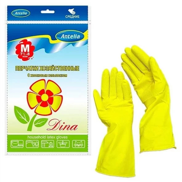 Перчатки резин. с хлопком ДИНА M средние Антелла