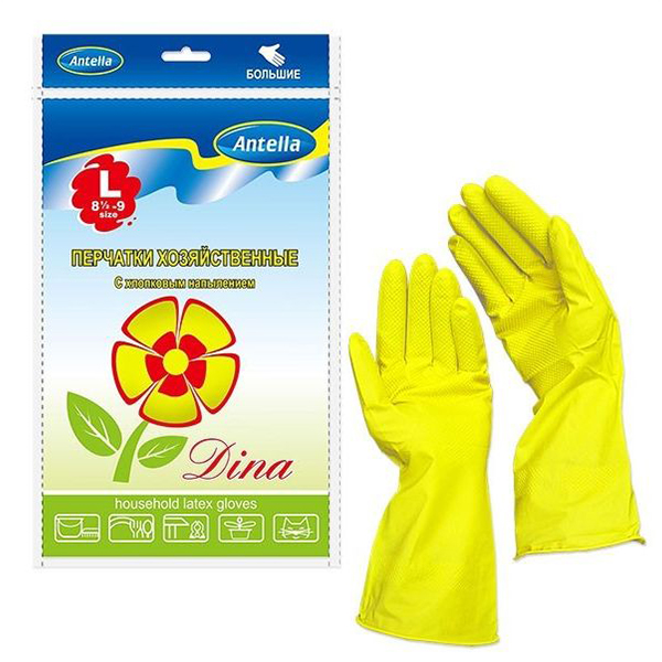 Перчатки резин. с хлопком ДИНА L большие Антелла