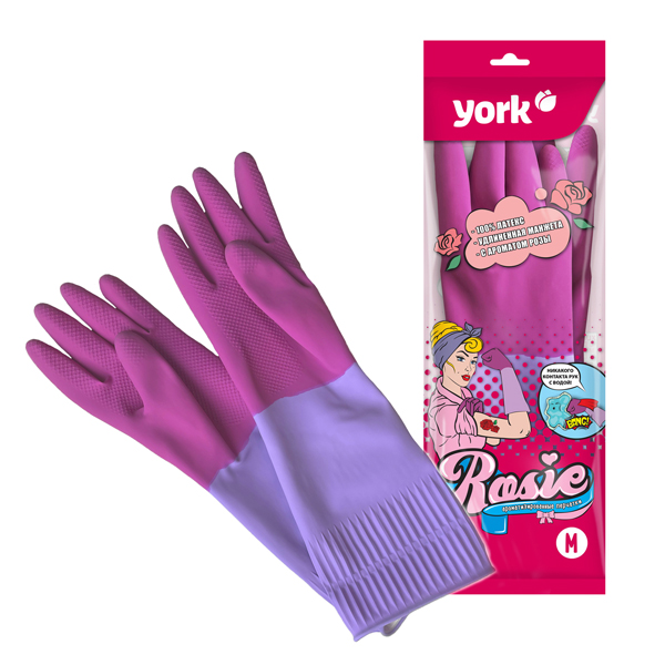 Перчатки резиновые с удлинённой манжетой ароматизированные Рози YORK (M)