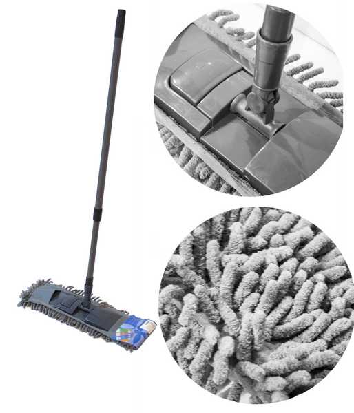 Швабра плоская 40см МЫШКА, серая лапша, металл телескоп ручка 80-125см