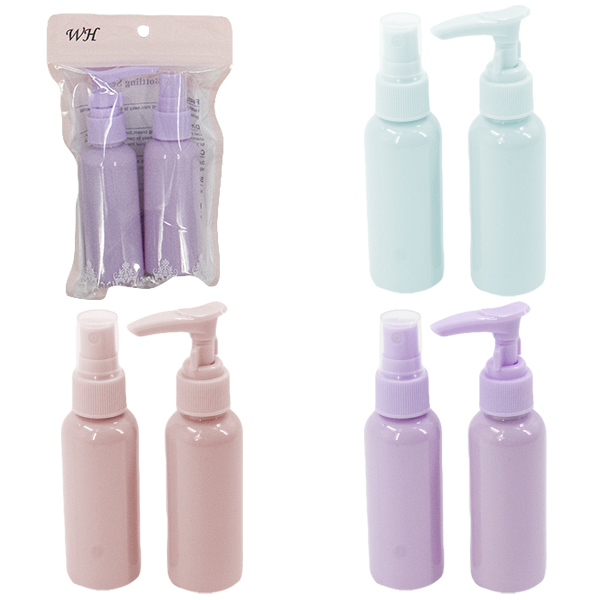 Дорожный набор для коcметики 2шт (флакон-дозатор 60мл, флакон-распылитель 60мл) пластик