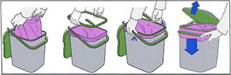 Контейнер дополнительно оснащен специальным ободком для крепления мусорного пакета.