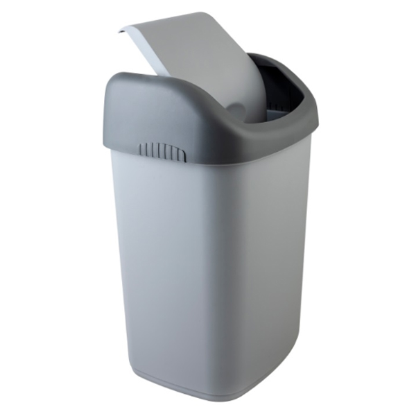 Контейнер вмещает в себя большое количество мусора, запах которого надежно удерживается внутри, благодаря специальной эргономичной крышке.