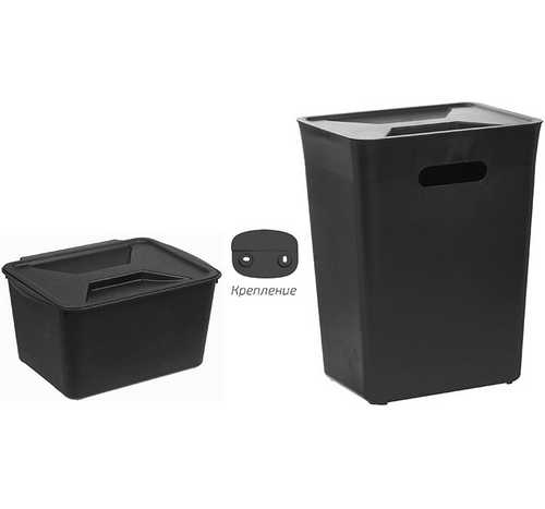Большой контейнер 12 л (27 × 20 × 34 см), навешивается на внутреннюю дверцу шкафа, на специальный крепёж.