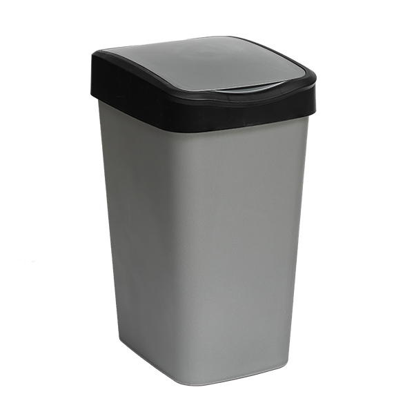 Ведро для мусора с подвижной крышкой 10л "Tandem" (сер.металлик/черный)