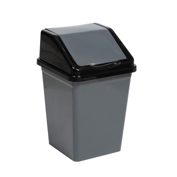 Ведро для мусора с подвижной крышкой 5л квадратное (серо/черный) (то)