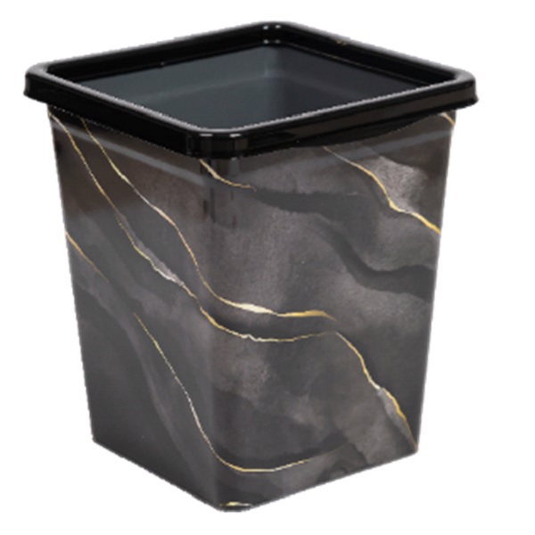 Ведро для мусора с фиксатором 14л квадратное "Черный Мрамор" (то)
