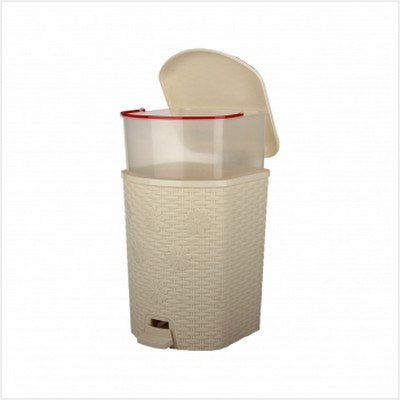 Контейнер для мусора с педалью 12л "Плетенка" (слоновая кость)(то)