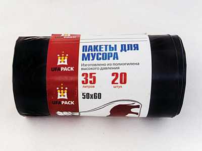 Мешки д/мусора "Уфа ПАК" с РУЧКАМИ 35л. 20шт. черные
