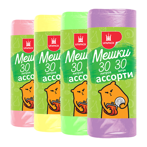 Пакеты д/мусора "ЭКОНОМ" 6 мкр 30 л. 30 шт. АССОРТИ