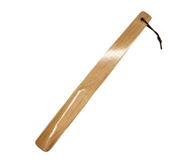 Длинный и удобный рожок для обуви, изготовленный из древесины.