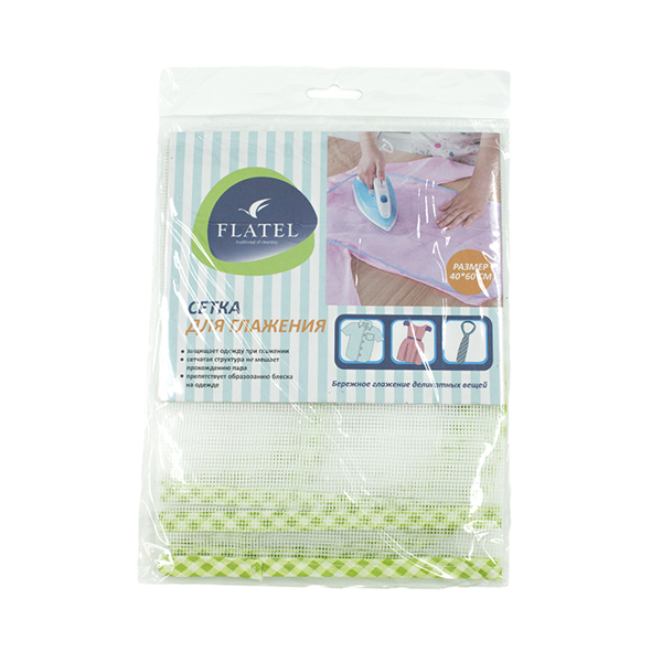 Сетку для глажения рекомендуется применять в режиме отпаривания. Сетка подходит для утюгов любого типа, выдерживает любой температурный нагрев современного утюга. Сетка для глажения не требует смачивания водой. Не прилипает ни к вещам, ни к утюгу. Благодаря удобному размеру, сетку легко перемещать. Край сетки обработан лентой, поэтому она не распускается.