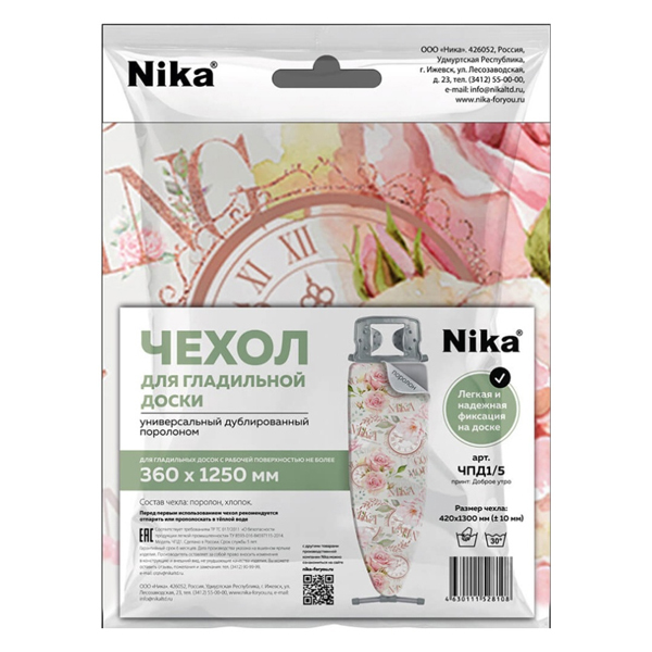 Чехол для гладильной доски универсальный дублированный поролоном 1300*420 доброе утро