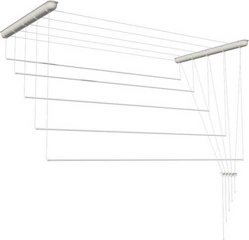 Стержни, на которые развешивается белье, опускаются до нужного уровня в зависимости от роста человека.