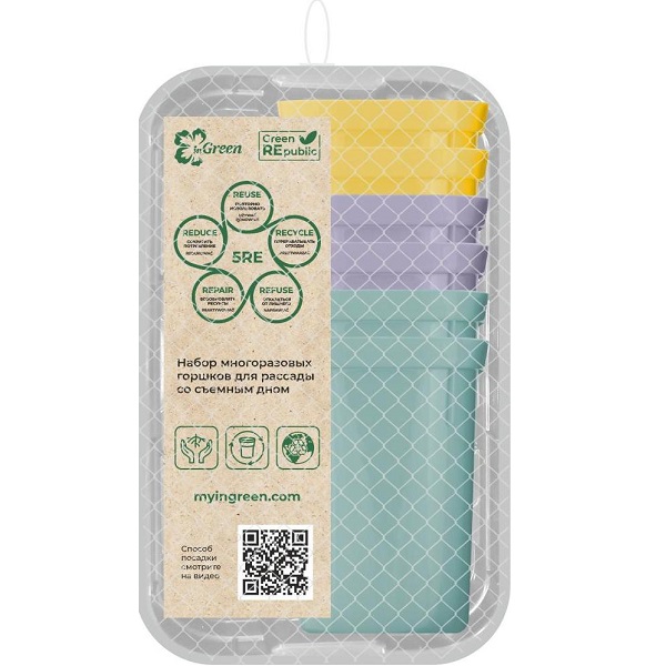 Набор горшочков для рассады InGreen со съемным дном на поддоне 6х400мл (микс)