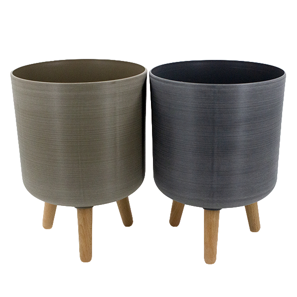 Кашпо пластиковое на деревянных ножках Ø-32см h-41см