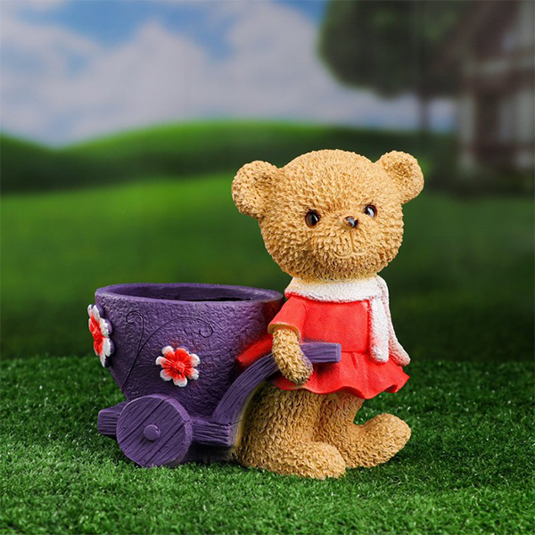 Кашпо "Медвежонок- девочка с тележкой"