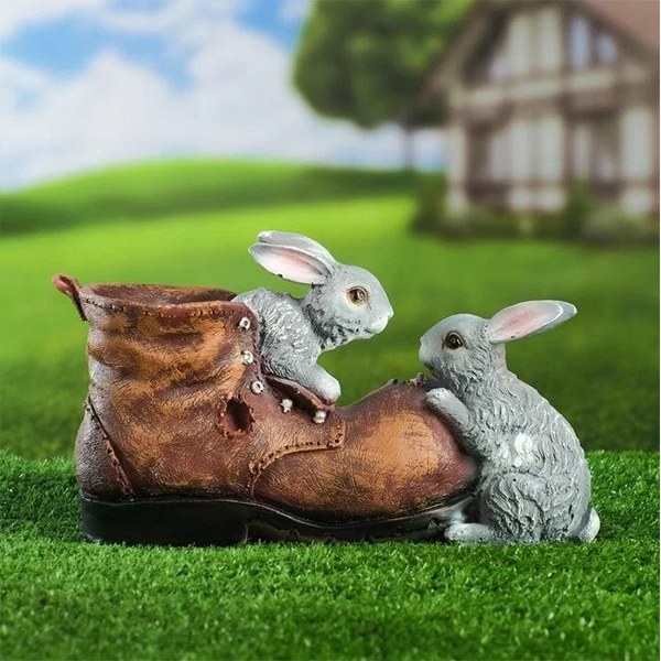 Кашпо "Башмак с зайчиками"