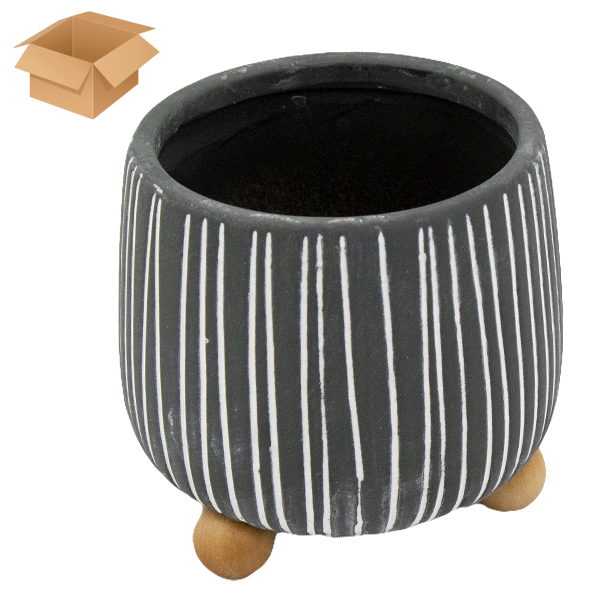 Кашпо керамическое ЛУКРЕЦИЯ серое 11*11*12см, на деревянных ножках