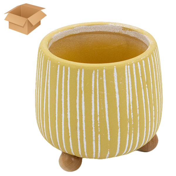 Кашпо керамическое ЛУКРЕЦИЯ желтое 11*11*12см, на деревянных ножках