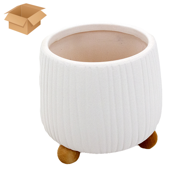 Кашпо керамическое ЛУКРЕЦИЯ белое 11*11*12см, на деревянных ножках