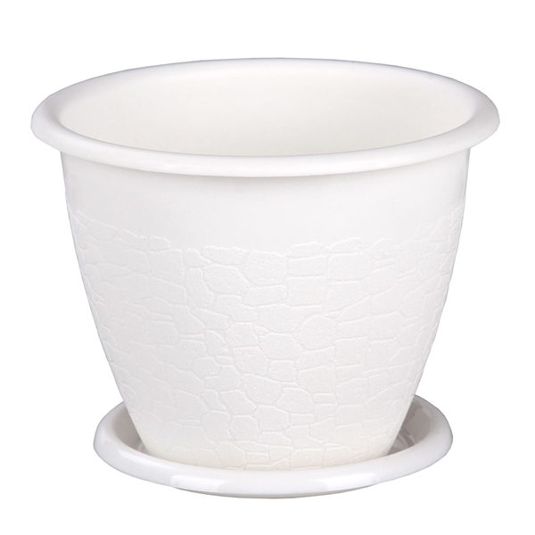 Горшок для комнатных растений «Розалия» стилизован под глиняный горшок с декоративными трещинами. Однако в отличие от глиняного изделия пластиковый горшок имеет несколько преимуществ: он более прочный и долговечный, из него легко осуществлять пересадку растений в ёмкость с большим объёмом, не травмируя корни. Поддон позволит регулировать интенсивность полива и сохранить чистоту места, где располагается горшок. Данное изделие прекрасно впишется в любой интерьер.0.069 кг 150х150х115 мм