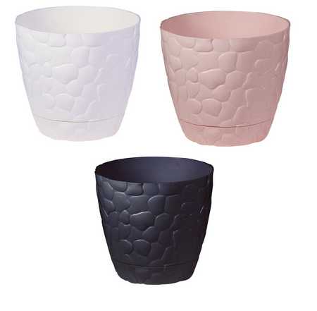 Стенки кашпо украшены объемной текстурой, имитирующей морскую гальку