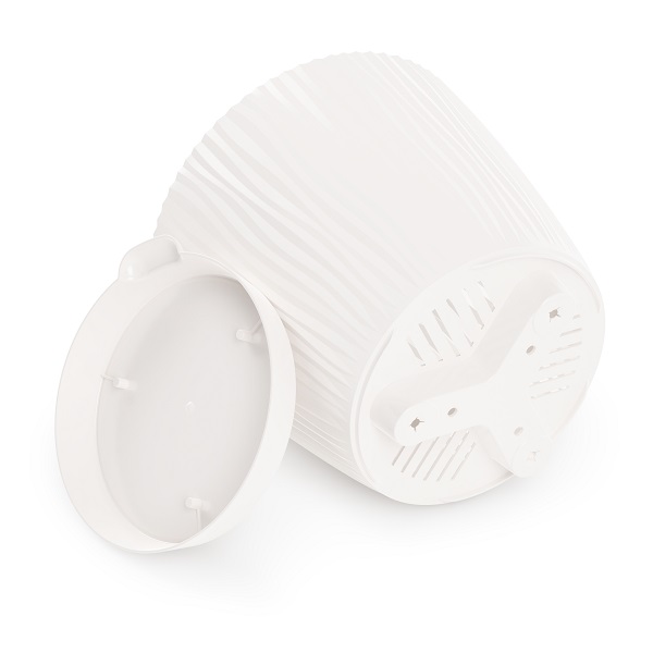 Горшок состоит из кашпо и поддона, которые надежно крепятся между собой. Горшок оснащен дренажной решеткой и специальным носиком, с помощью которого производится прикорневой полив. Такая система полива создает вентиляцию в корневой системе растения, а также позволяет выходить лишней влаге из почвы. Рифлёный рисунок имитирует рельефную текстуру традиционной керамики ручной работы. «Волнистая» поверхность сохраняет свою форму как с внешней, так и с внутренней стороны горшка. Горшок «Флис» не только привлекает своим стильным и современным дизайном, но также поддерживает оптимальный уровень влаги в корне растения. Благодаря этой системе, вы можете заботиться о своем растении и наслаждаться его красотой без лишних хлопот.