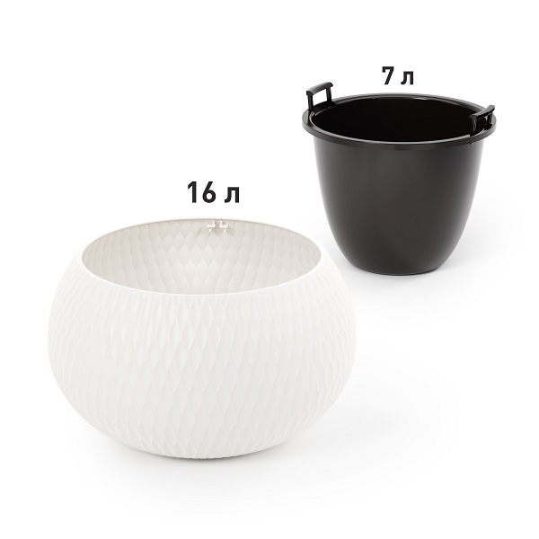 Кашпо «Жемчужина» предназначено для выращивания комнатных и уличных растений. Кашпо состоит из двух частей. Внутренняя вставка имеет отверстия и предотвращает перелив растений и загнивание корней. Внешняя часть защищает кашпо от протекания, а многогранная поверхность придает визуальную легкость и особенную эстетику изделию. Благодаря необычной сферической форме оно станет украшением любого интерьера.